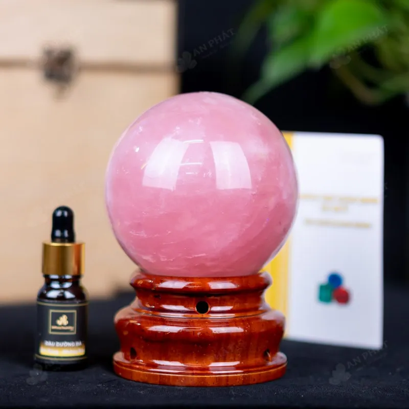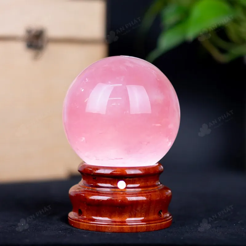 Ảnh cận cảnh quả cầu đá thạch anh hồng