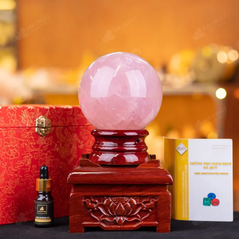 - Trọn bộ sản phẩm bao gồm: quả cầu + 01 đế gỗ + hộp đựng sang trọng + túi giấy sang trọng + dầu dưỡng đá + giấy kiểm định chất lượng đá