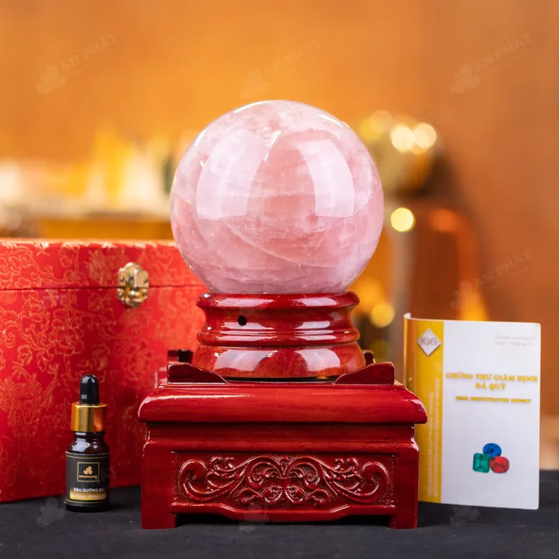 - Trọn bộ sản phẩm bao gồm: quả cầu + 01 đế gỗ + hộp đựng sang trọng + túi giấy sang trọng + dầu dưỡng đá + giấy kiểm định chất lượng đá