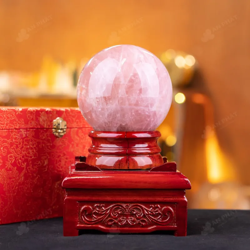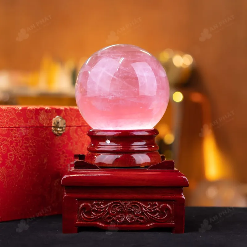 Ảnh cận cảnh quả cầu đá thạch anh hồng