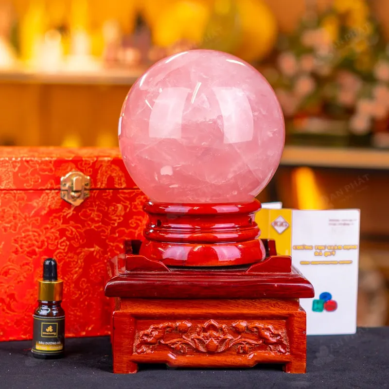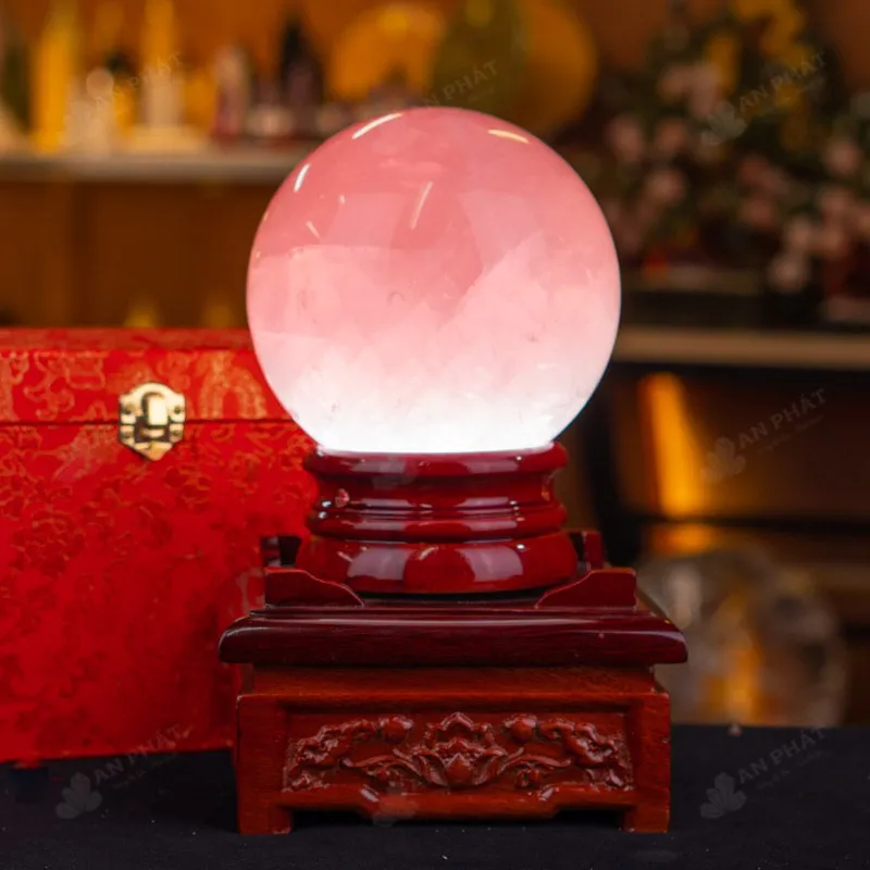 Ảnh cận cảnh quả cầu đá thạch anh hồng