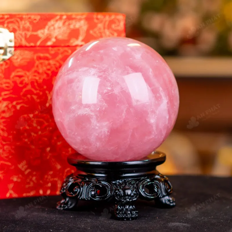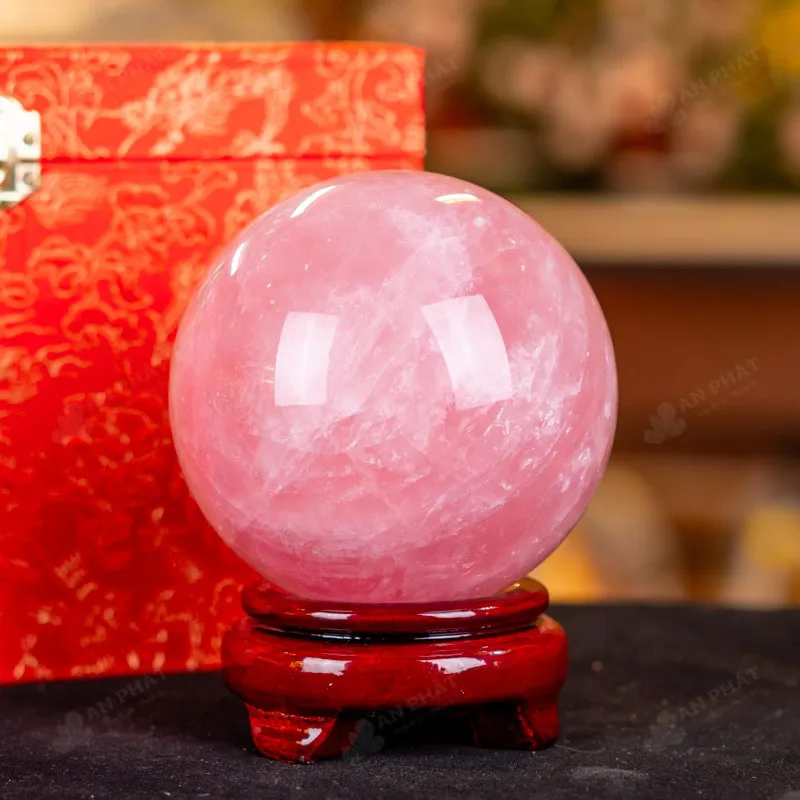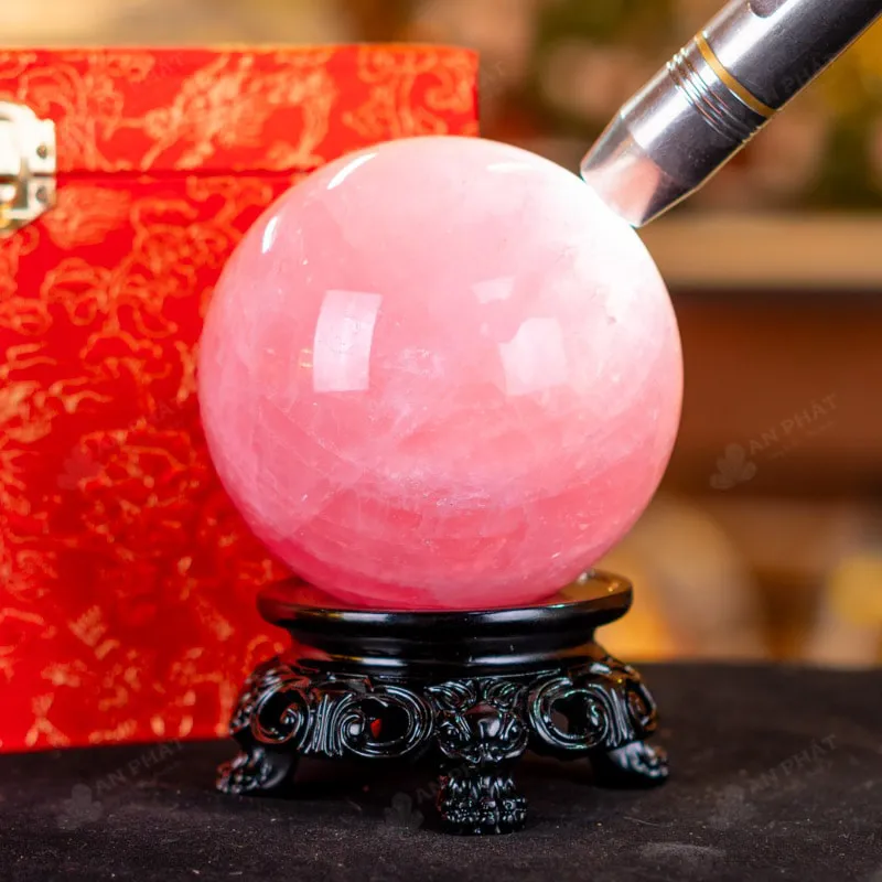 Ảnh cận cảnh quả cầu thạch anh hồng