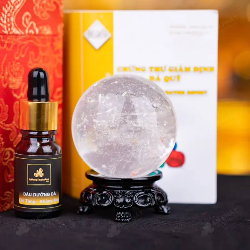 - Trọn bộ sản phẩm bao gồm: quả cầu + 01 đế gỗ + hộp đựng sang trọng + túi giấy sang trọng + dầu dưỡng đá + thiệp + giấy kiểm định chất lượng đá