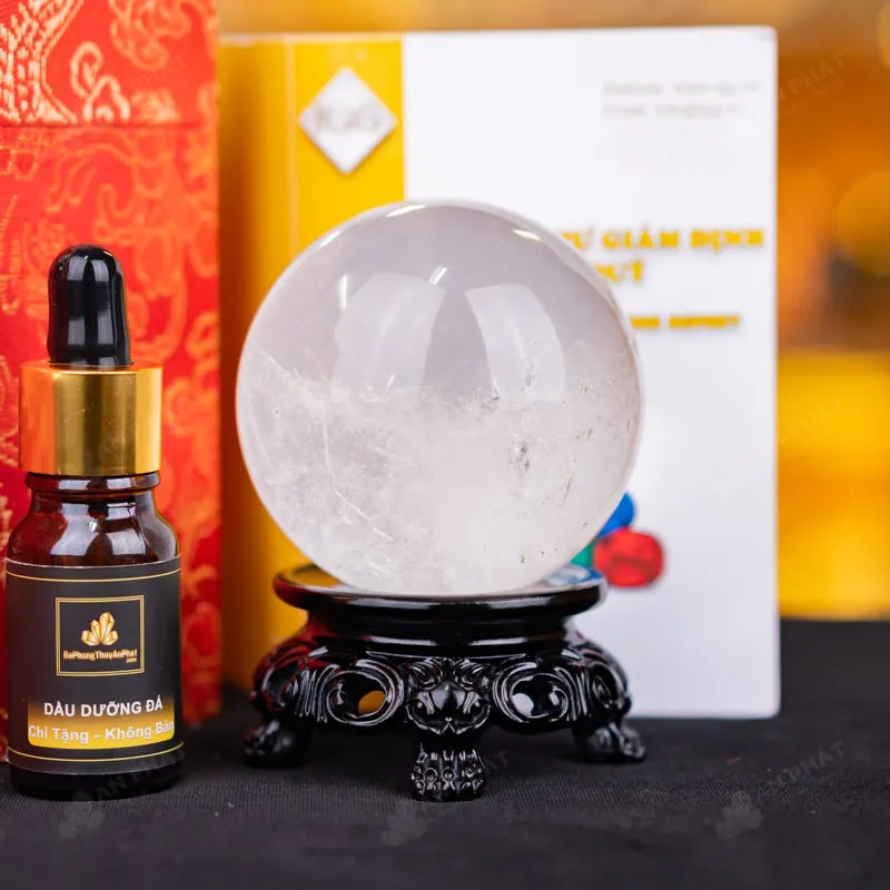 - Trọn bộ sản phẩm bao gồm: quả cầu + 01 đế gỗ + hộp đựng sang trọng + túi giấy sang trọng + dầu dưỡng đá + thiệp + giấy kiểm định chất lượng đá