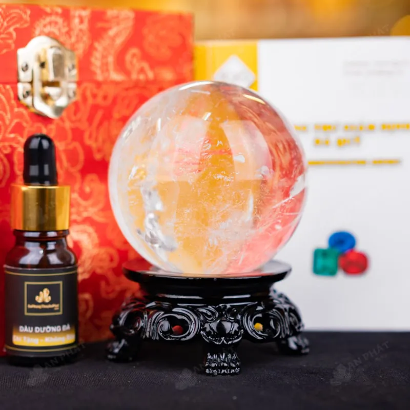 - Trọn bộ sản phẩm bao gồm: quả cầu + 01 đế gỗ + hộp đựng sang trọng + túi giấy sang trọng + dầu dưỡng đá + thiệp + giấy kiểm định chất lượng đá