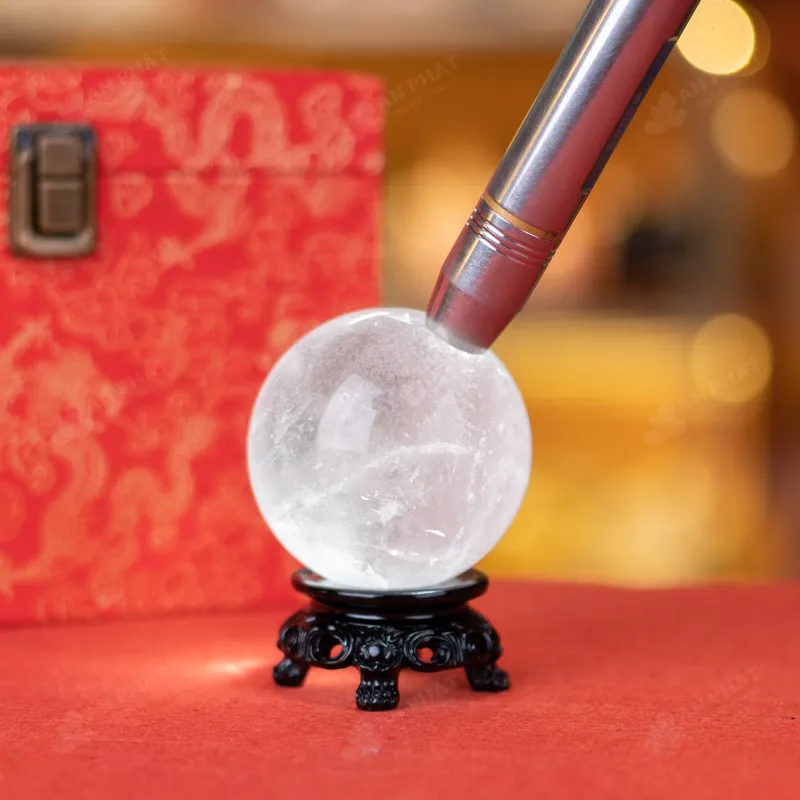 Ảnh cận cảnh quả cầu đá thạch anh trắng