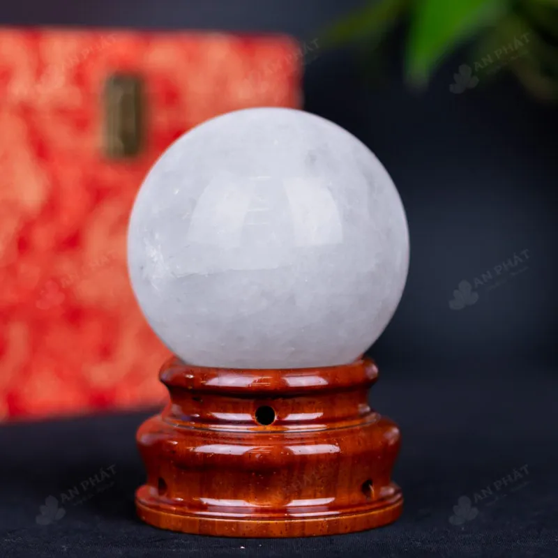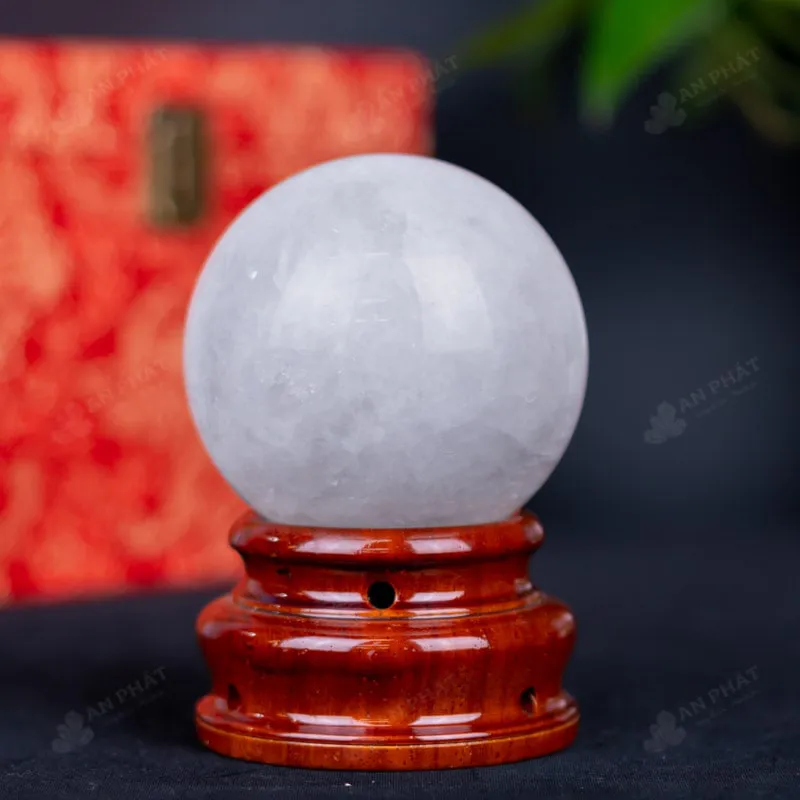 Ảnh cận cảnh quả cầu đá thạch anh trắng