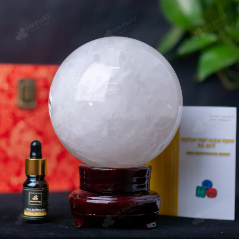- Trọn bộ sản phẩm bao gồm: quả cầu + đế gỗ + hộp đựng sang trọng + túi giấy sang trọng + dầu dưỡng đá + giấy kiểm định chất lượng đá