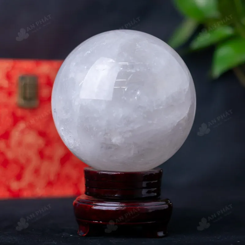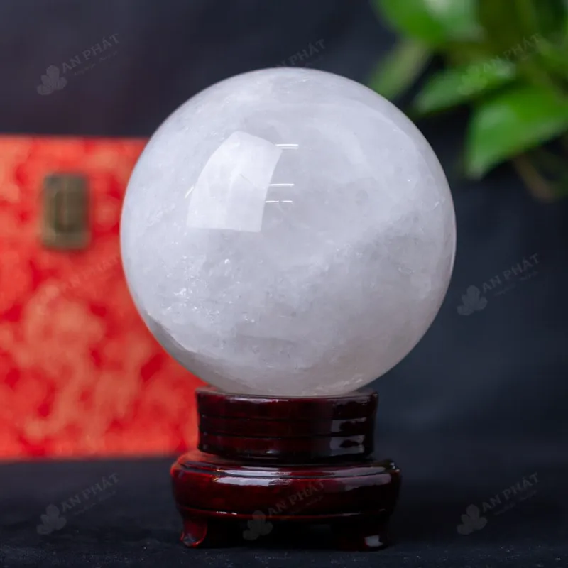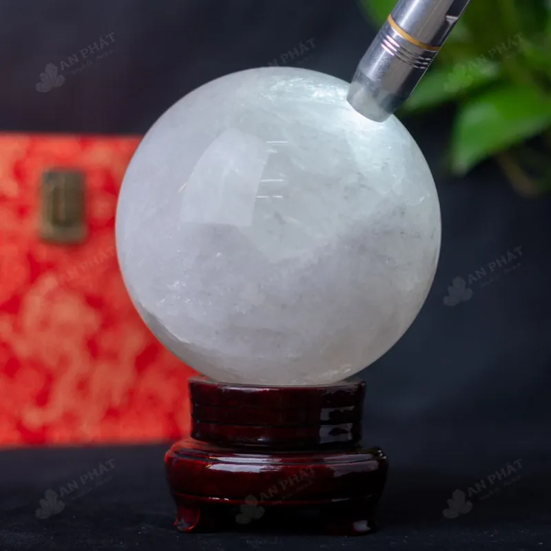 Ảnh cận cảnh quả cầu đá thạch anh trắng