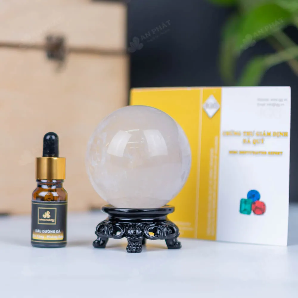 - Trọn bộ sản phẩm bao gồm: quả cầu + đế gỗ + hộp đựng sang trọng + túi giấy sang trọng + dầu dưỡng đá + giấy kiểm định chất lượng đá