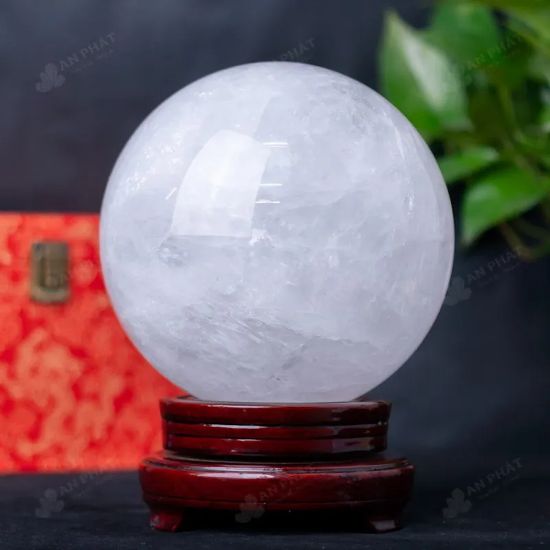 Ảnh cận cảnh quả cầu đá thạch anh trắng