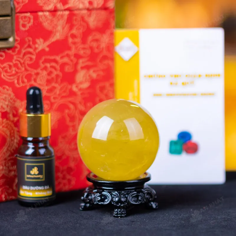 - Trọn bộ sản phẩm bao gồm: quả cầu + 01 đế gỗ + hộp đựng sang trọng + túi giấy sang trọng + dầu dưỡng đá + giấy kiểm định chất lượng đá