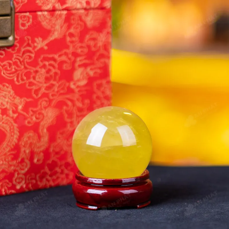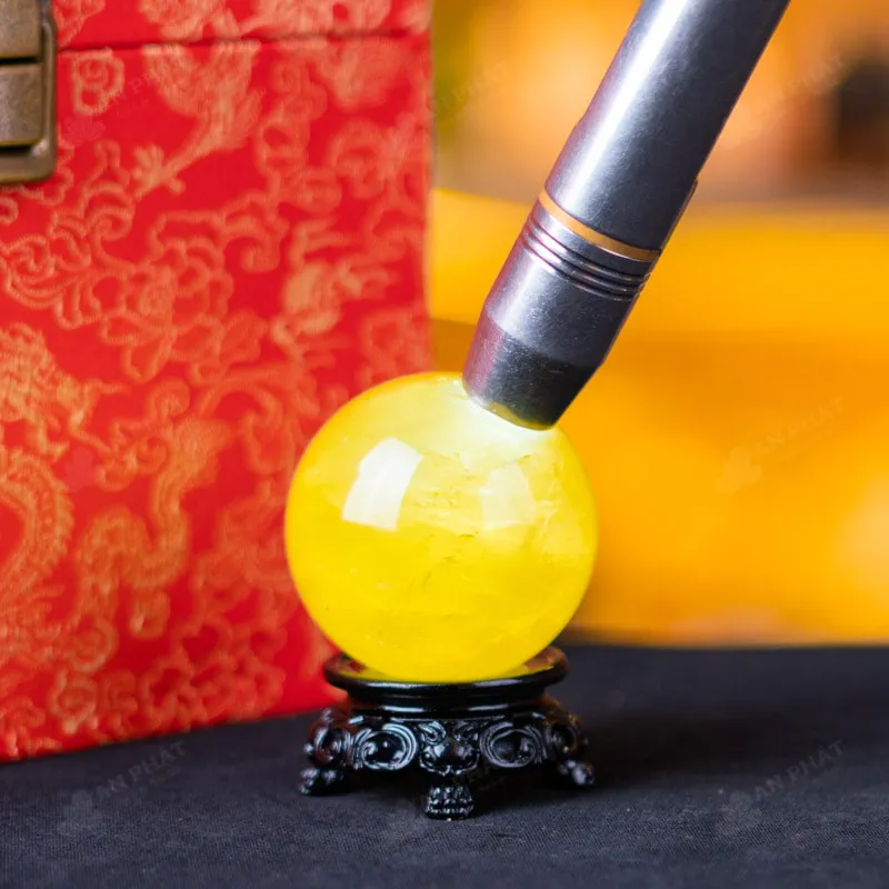 Ảnh cận cảnh quả cầu đá thạch anh vàng