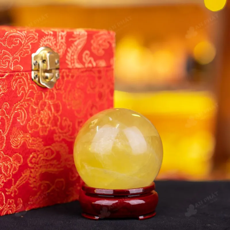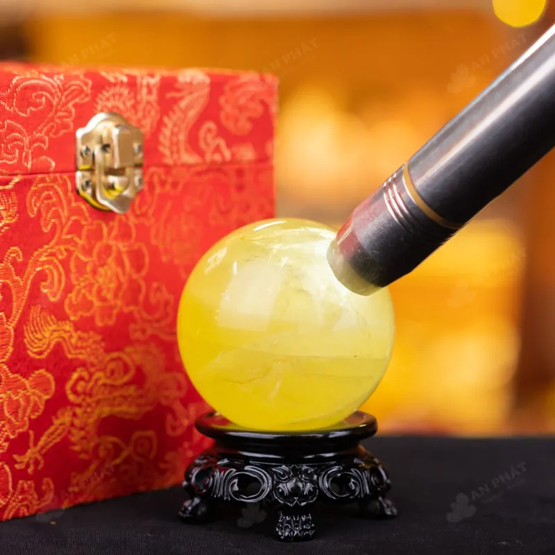 Ảnh cận cảnh quả cầu đá thạch anh vàng