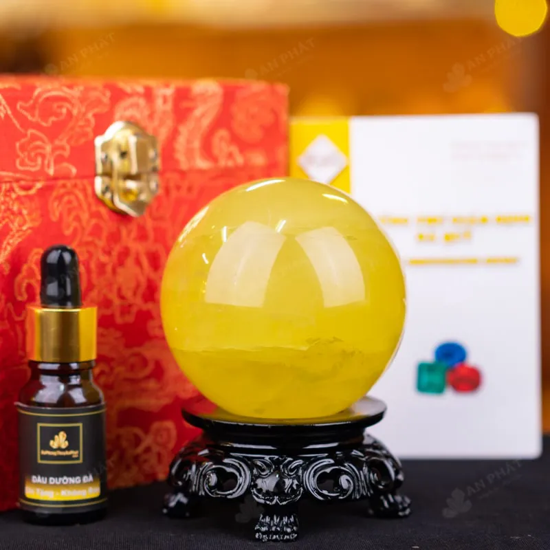 - Trọn bộ sản phẩm bao gồm: quả cầu + 01 đế gỗ + hộp đựng sang trọng + túi giấy sang trọng + dầu dưỡng đá + thiệp + giấy kiểm định chất lượng đá