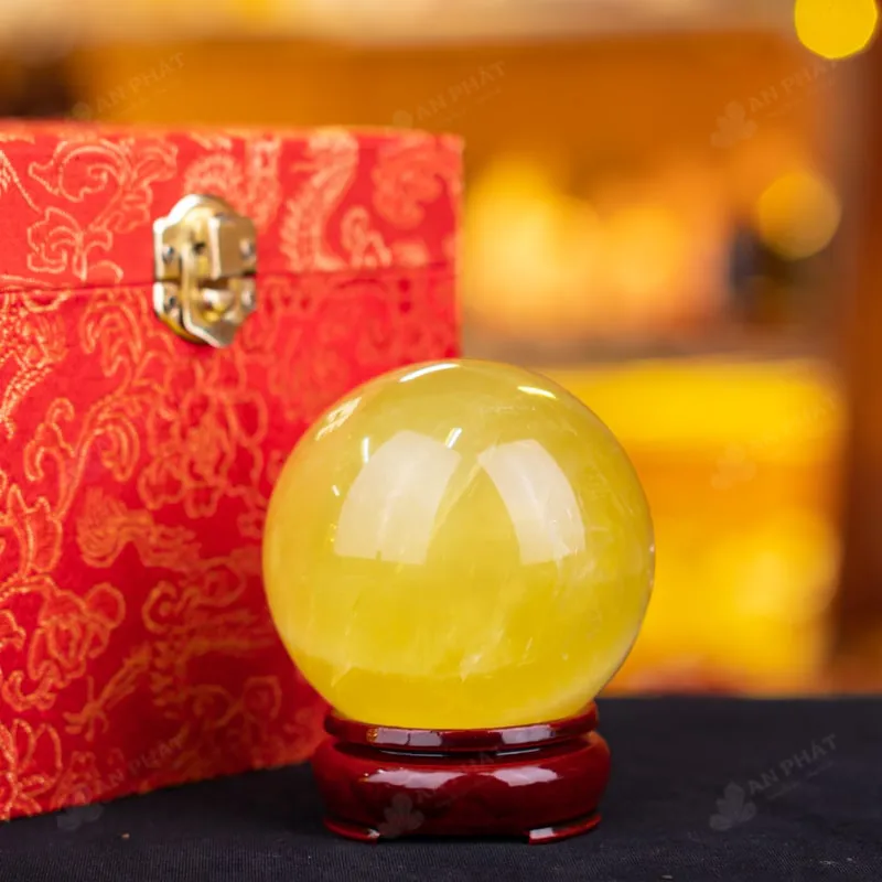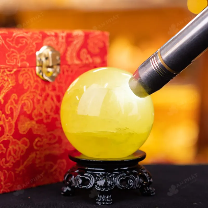 Quả cầu phong thủy đá thạch anh vàng