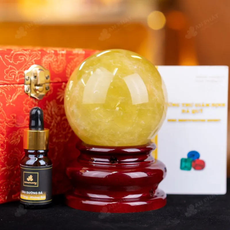 - Trọn bộ sản phẩm bao gồm: quả cầu + 01 đế gỗ + hộp đựng sang trọng + túi giấy sang trọng + dầu dưỡng đá + thiệp + giấy kiểm định chất lượng đá