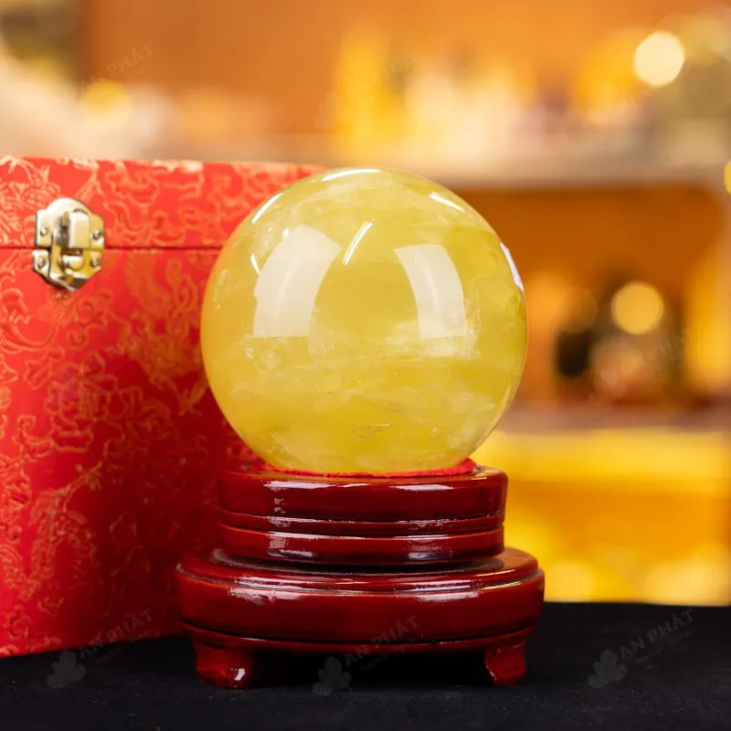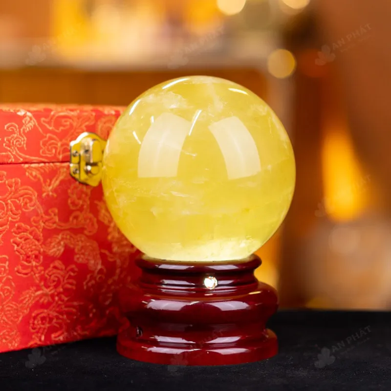 Ảnh cận cảnh quả cầu thạch anh vàng