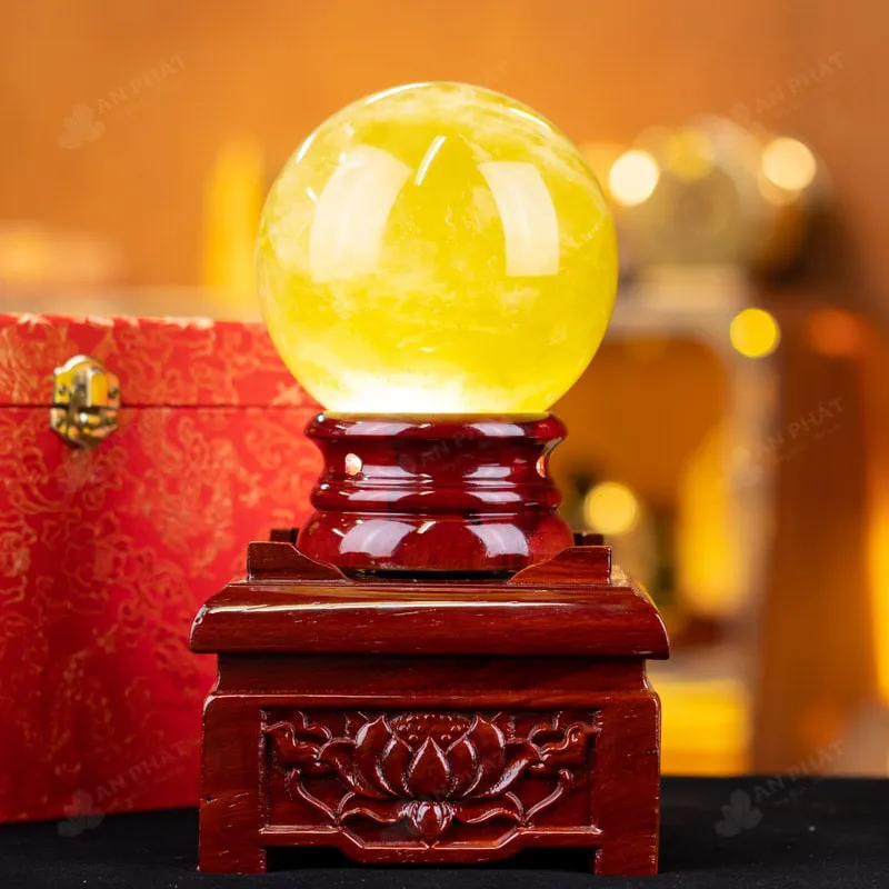 Ảnh cận cảnh quả cầu thạch anh vàng