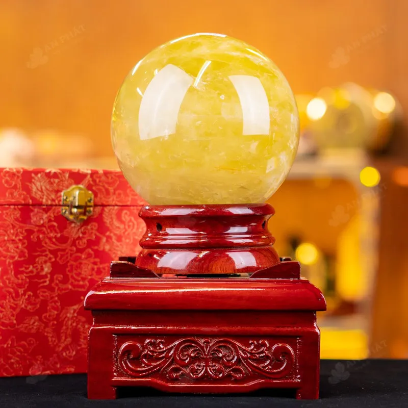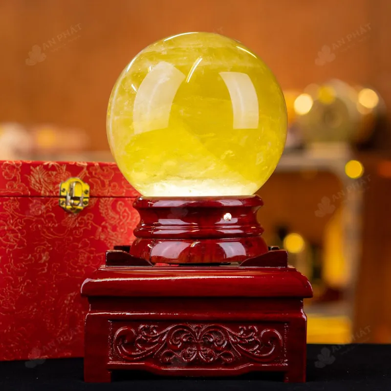 Ảnh cận cảnh quả cầu thạch anh vàng