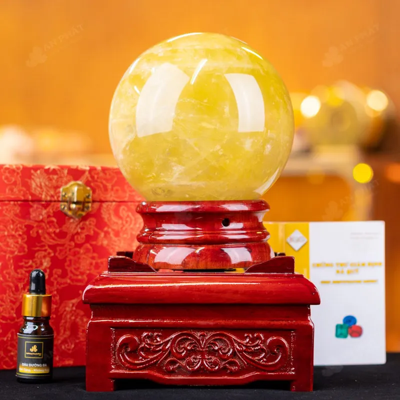 - Trọn bộ sản phẩm bao gồm: quả cầu + 01 đế gỗ + hộp đựng sang trọng + túi giấy sang trọng + dầu dưỡng đá + thiệp + giấy kiểm định chất lượng đá