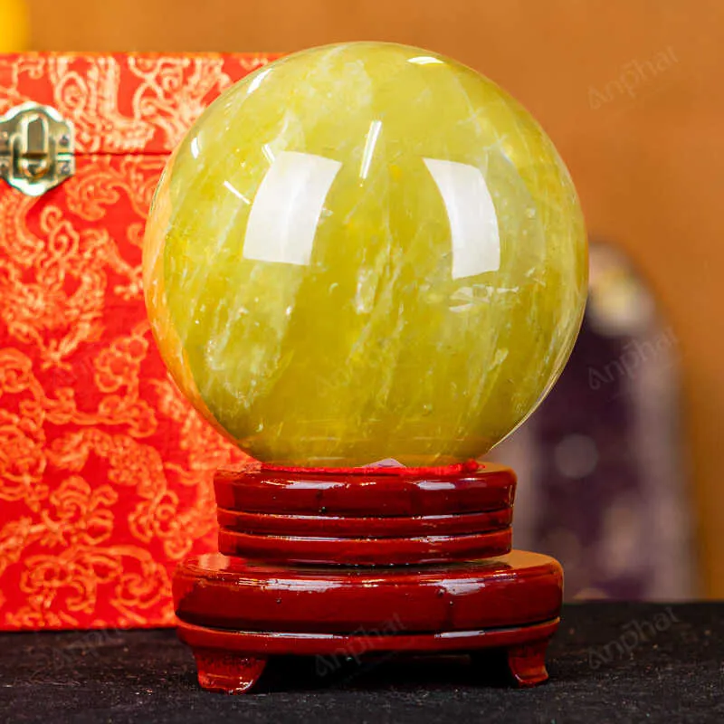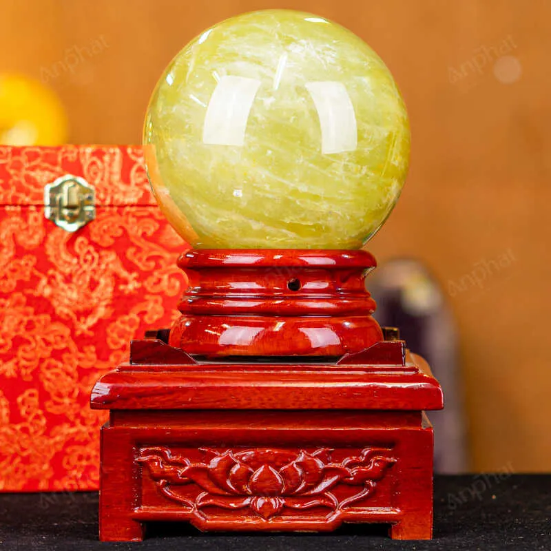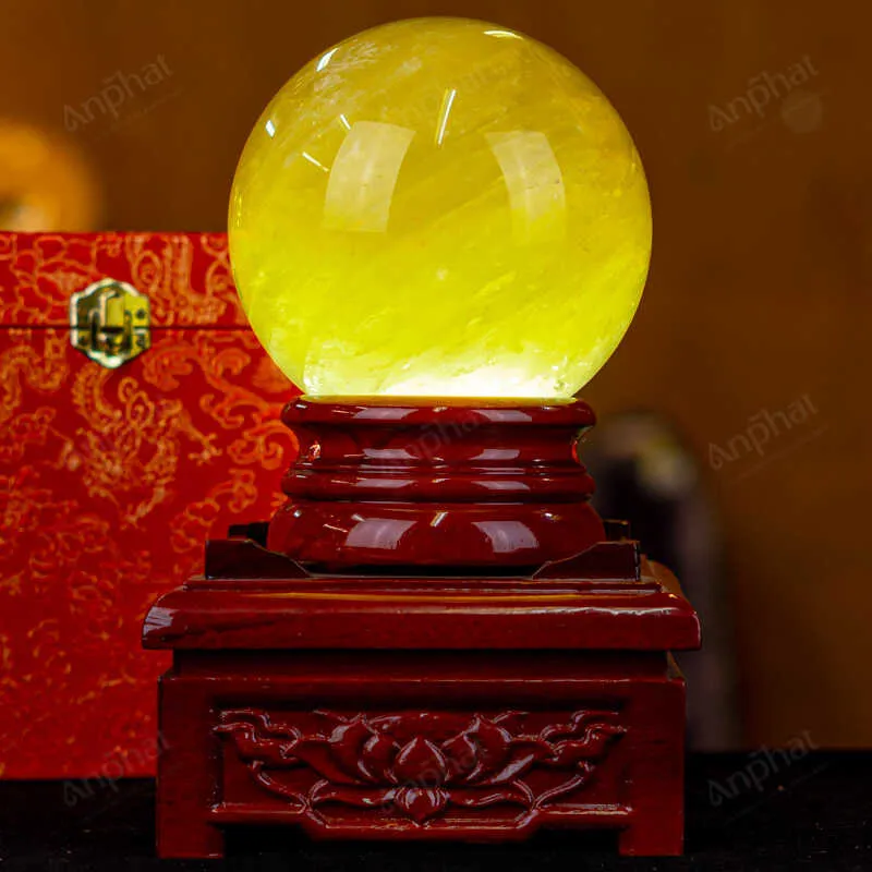 Ảnh cận cảnh quả cầu đá thạch anh vàng