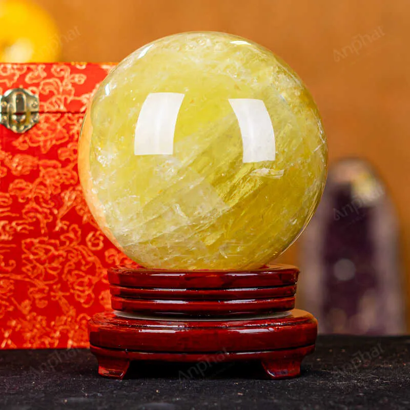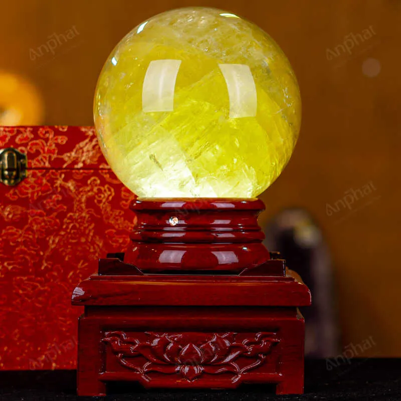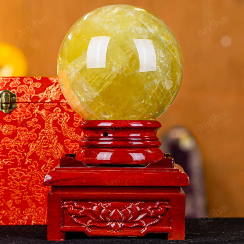 Ảnh cận cảnh quả cầu đá thạch anh vàng