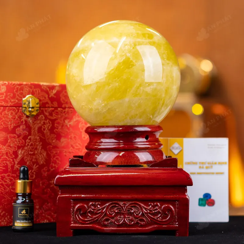 - Trọn bộ sản phẩm bao gồm: quả cầu + 01 đế gỗ + hộp đựng sang trọng + túi giấy sang trọng + dầu dưỡng đá + thiệp + giấy kiểm định chất lượng đá