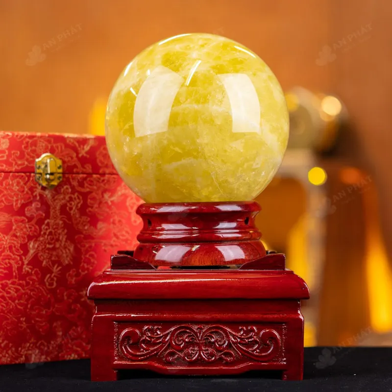 Ảnh cận cảnh quả cầu thạch anh vàng