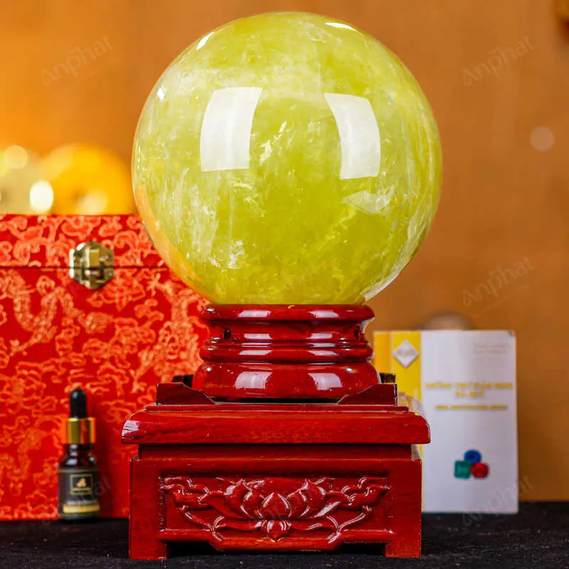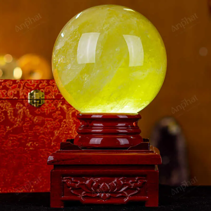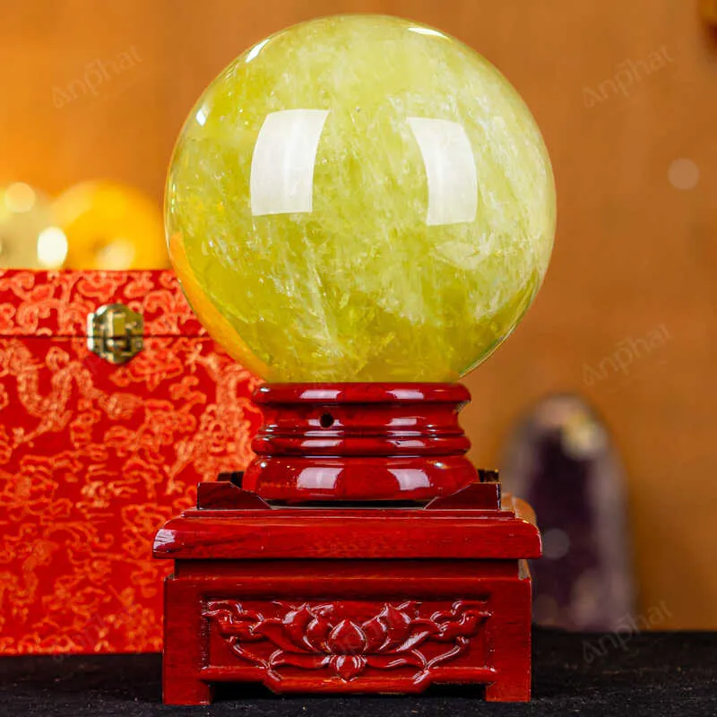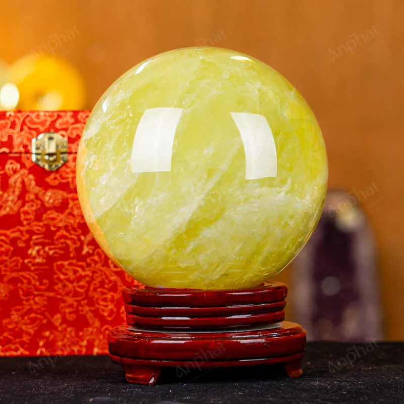 Ảnh cận cảnh quả cầu đá thạch anh vàng