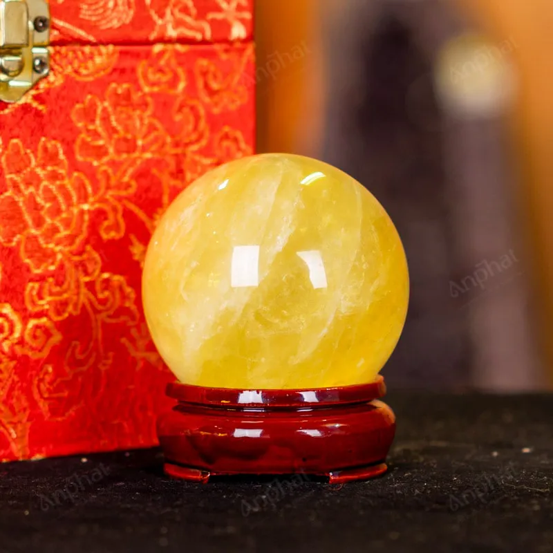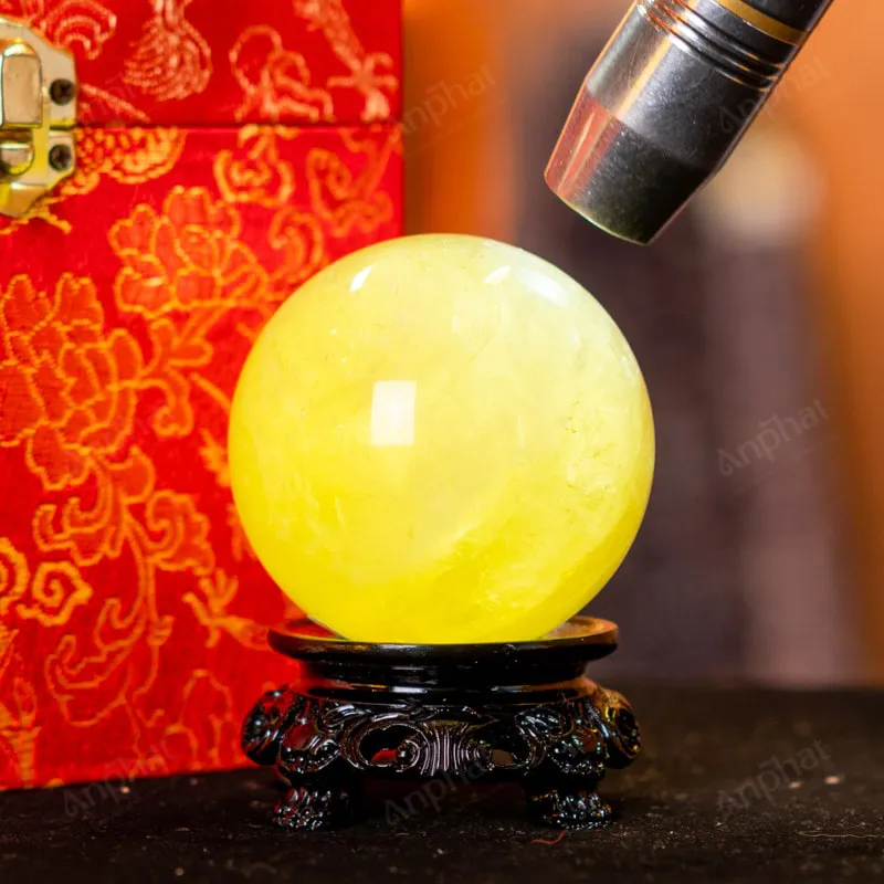Ảnh cận cảnh quả cầu đá thạch anh vàng