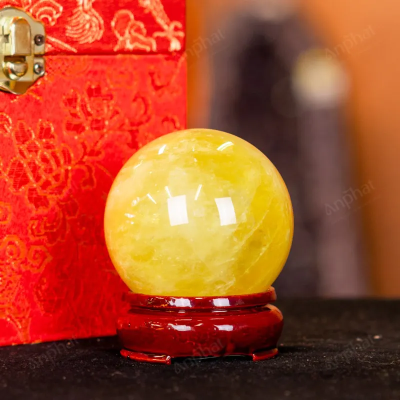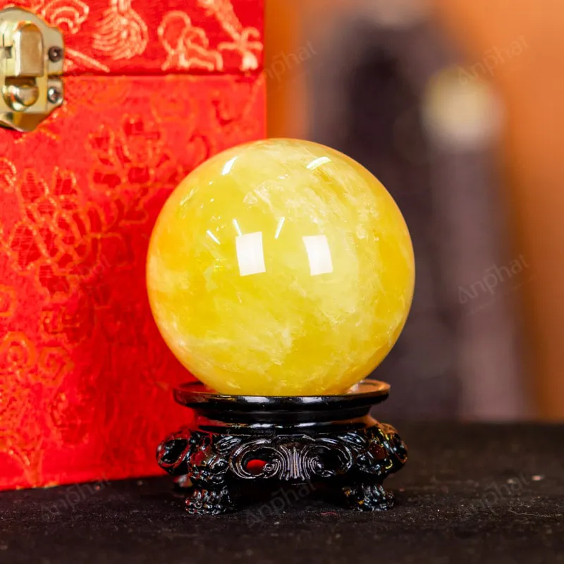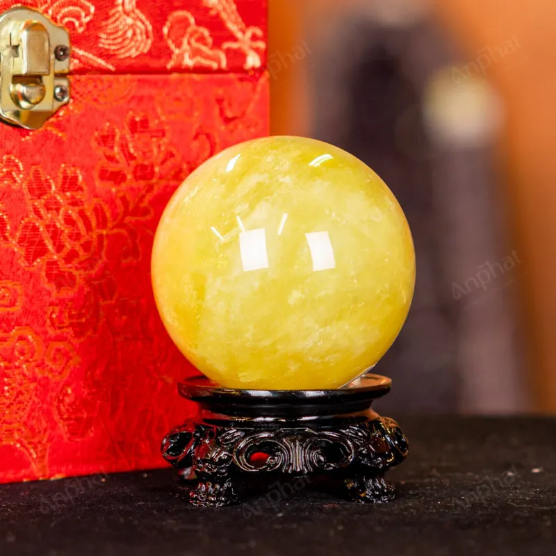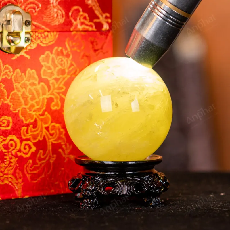 Ảnh cận cảnh quả cầu đá thạch anh vàng