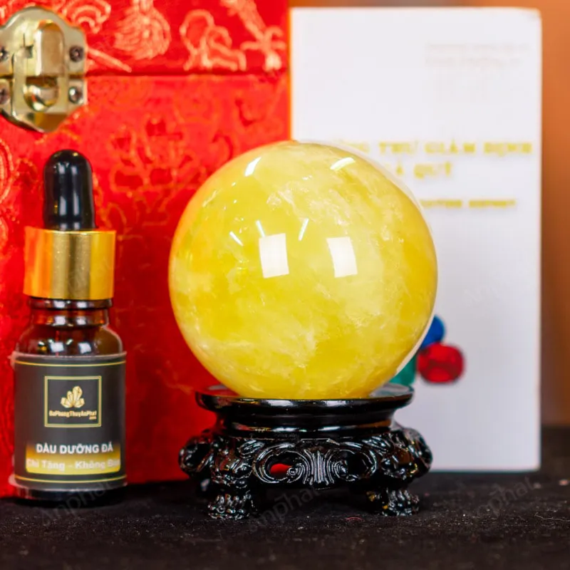 - Trọn bộ sản phẩm bao gồm: quả cầu + 01 đế gỗ + hộp đựng sang trọng + túi giấy sang trọng + dầu dưỡng đá + thiệp + giấy kiểm định chất lượng đá