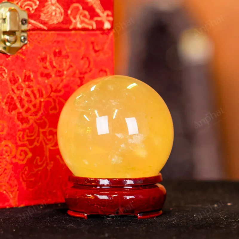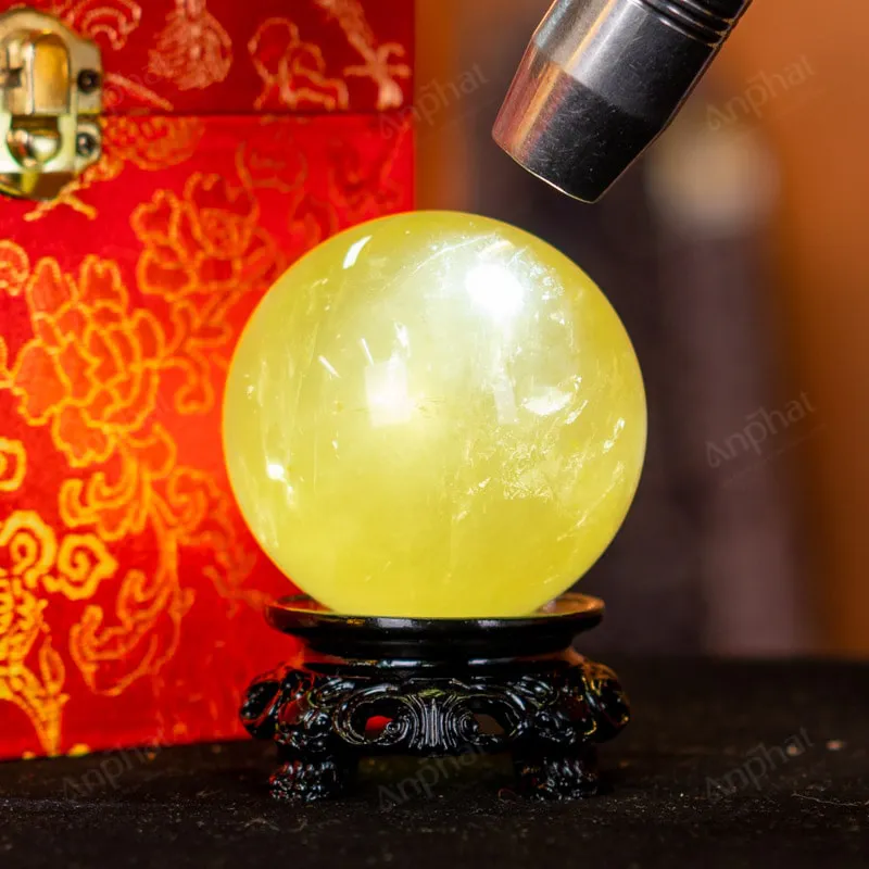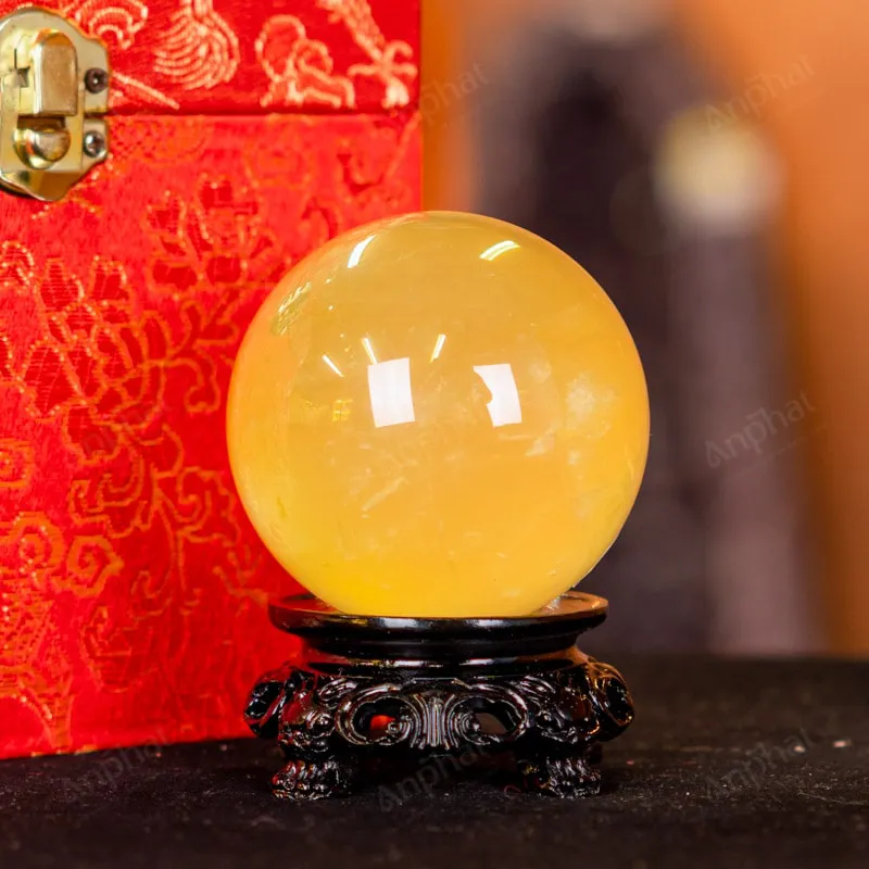 Ảnh cận cảnh quả cầu đá thạch anh vàng