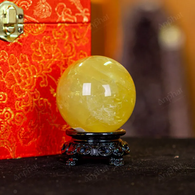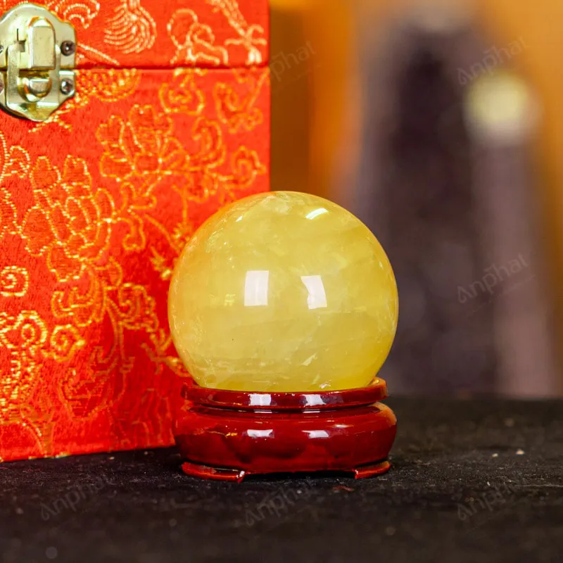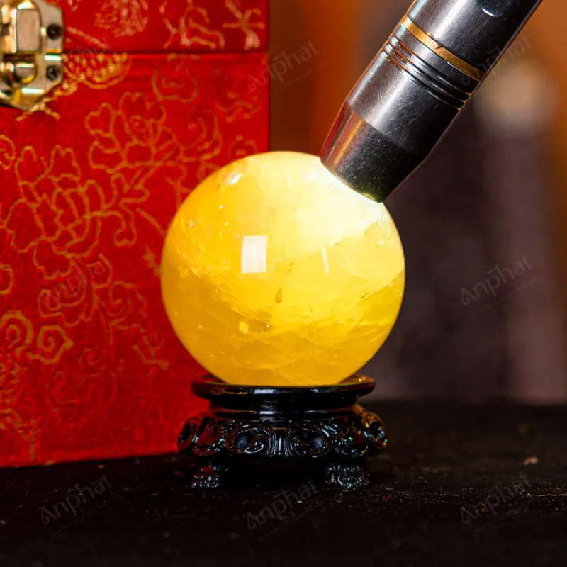Ảnh cận cảnh quả cầu đá thạch anh vàng