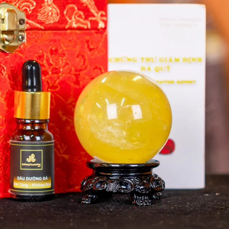 - Trọn bộ sản phẩm bao gồm: quả cầu + 01 đế gỗ + hộp đựng sang trọng + túi giấy sang trọng + dầu dưỡng đá + thiệp + giấy kiểm định chất lượng đá