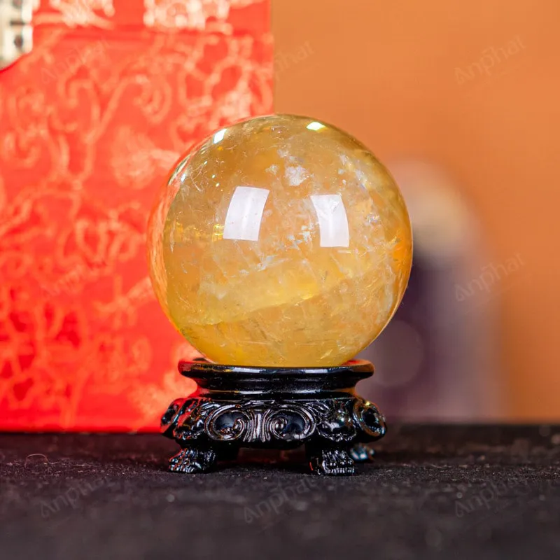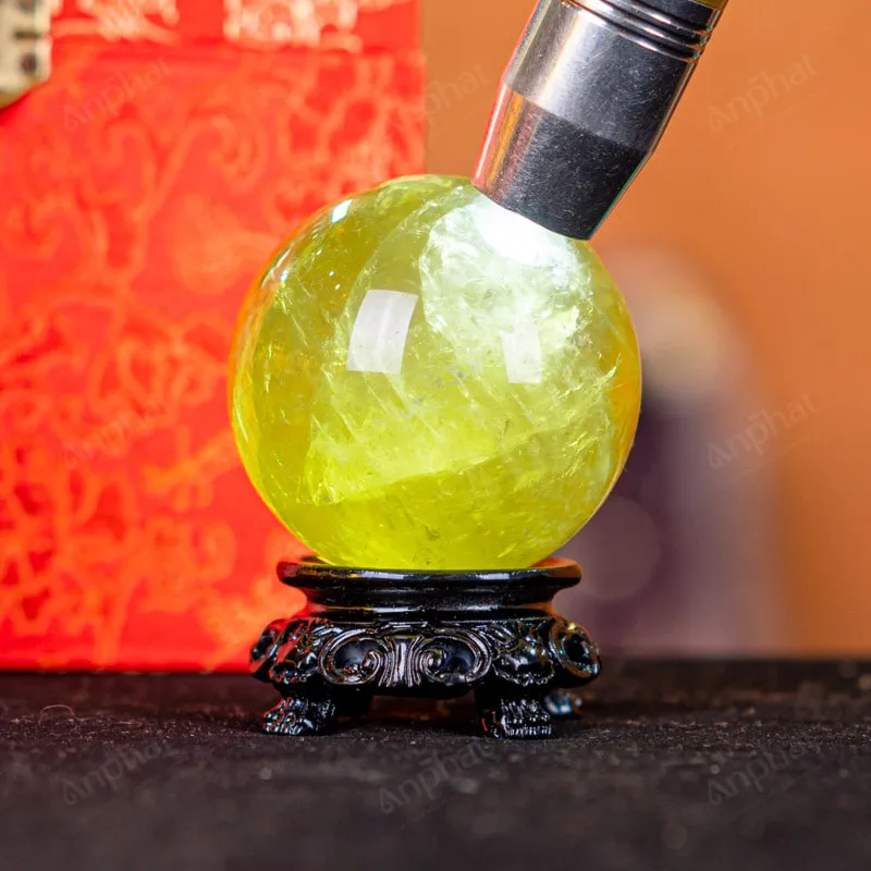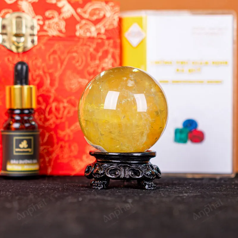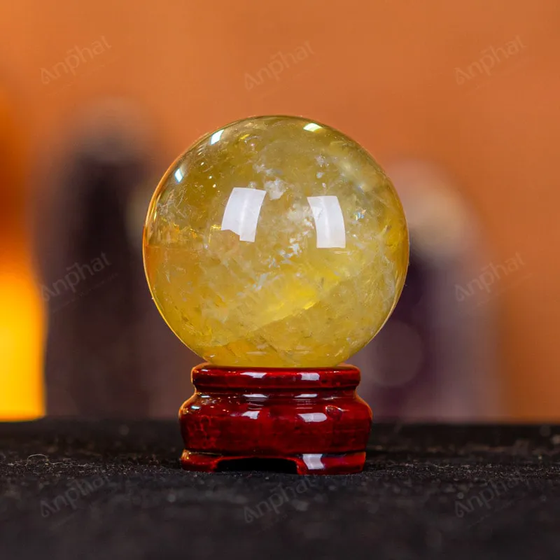 Ảnh cận cảnh quả cầu đá thạch anh vàng