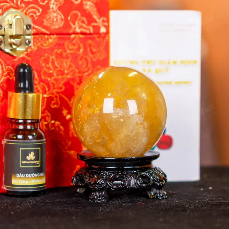 - Trọn bộ sản phẩm bao gồm: quả cầu + 01 đế gỗ + hộp đựng sang trọng + túi giấy sang trọng + dầu dưỡng đá + thiệp + giấy kiểm định chất lượng đá