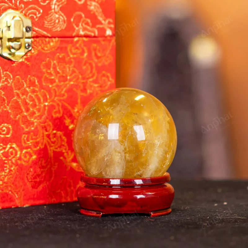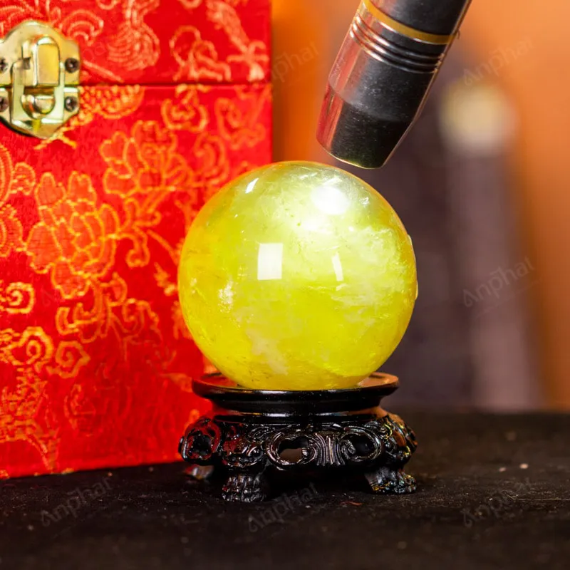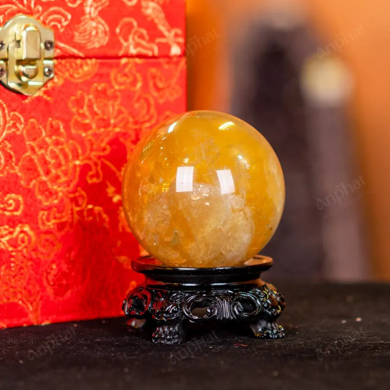 Ảnh cận cảnh quả cầu thạch anh vàng