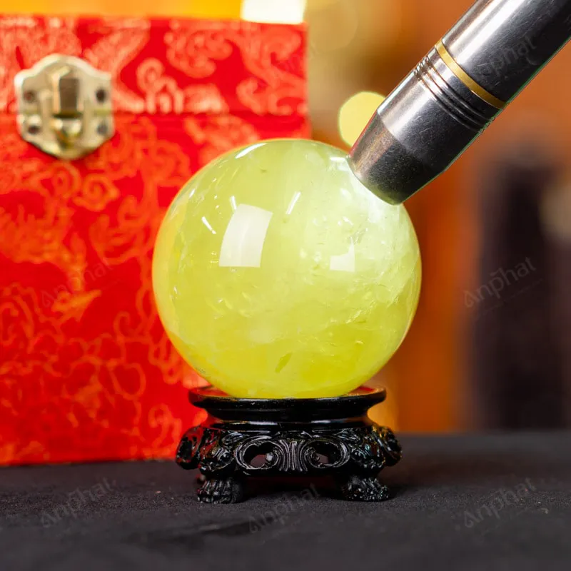 - Trọn bộ sản phẩm bao gồm: quả cầu + 01 đế gỗ + hộp đựng sang trọng + túi giấy sang trọng + dầu dưỡng đá + thiệp + giấy kiểm định chất lượng đá