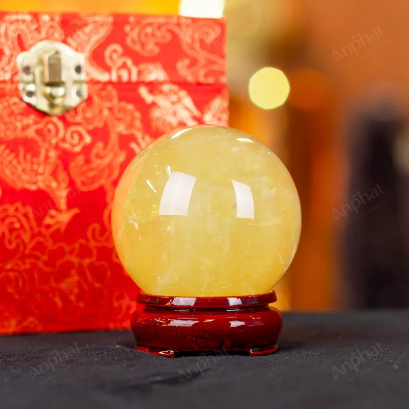 Ảnh cận cảnh quả cầu đá thạch anh vàng