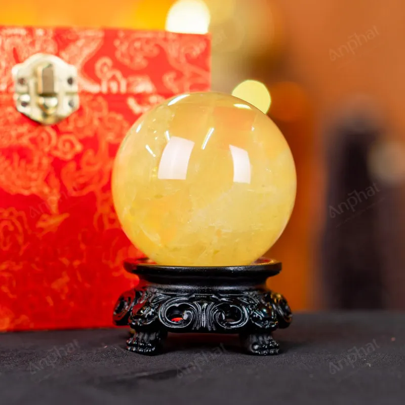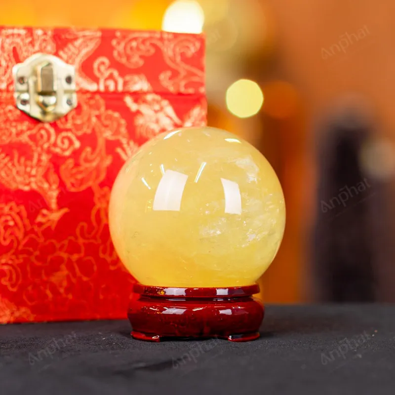 Quả Cầu Phong Thủy Đá Thạch Anh Vàng 2A – 0,46kg Có Sao – M2606046