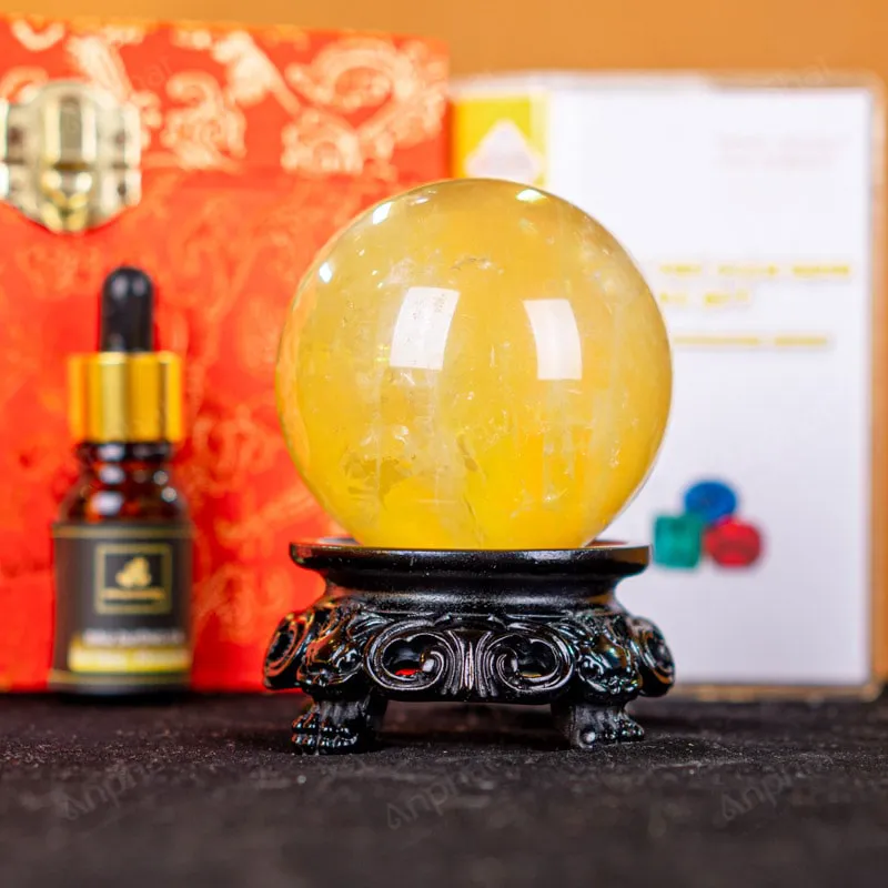 Ảnh cận cảnh quả cầu đá thạch anh vàng