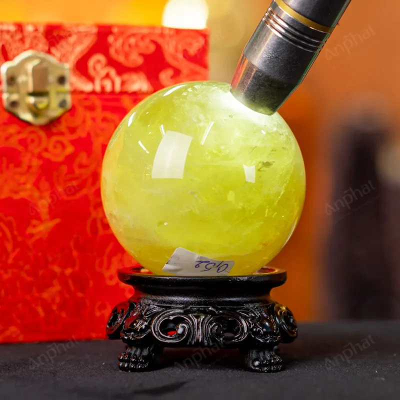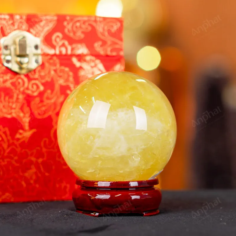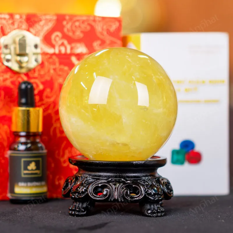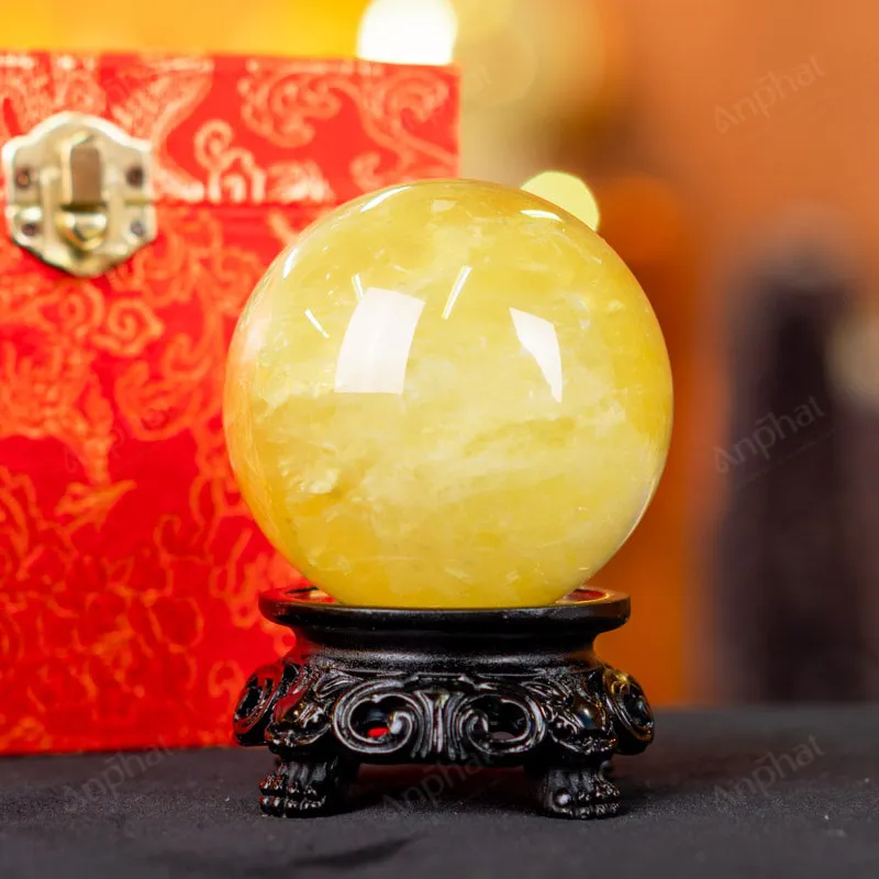 Ảnh cận cảnh quả cầu đá thạch anh vàng