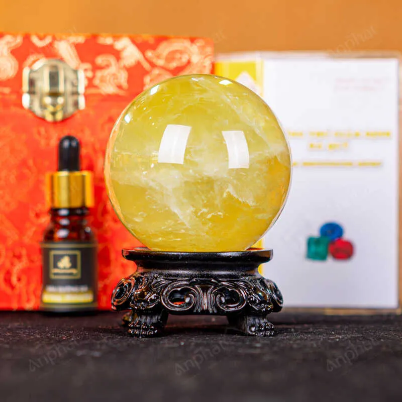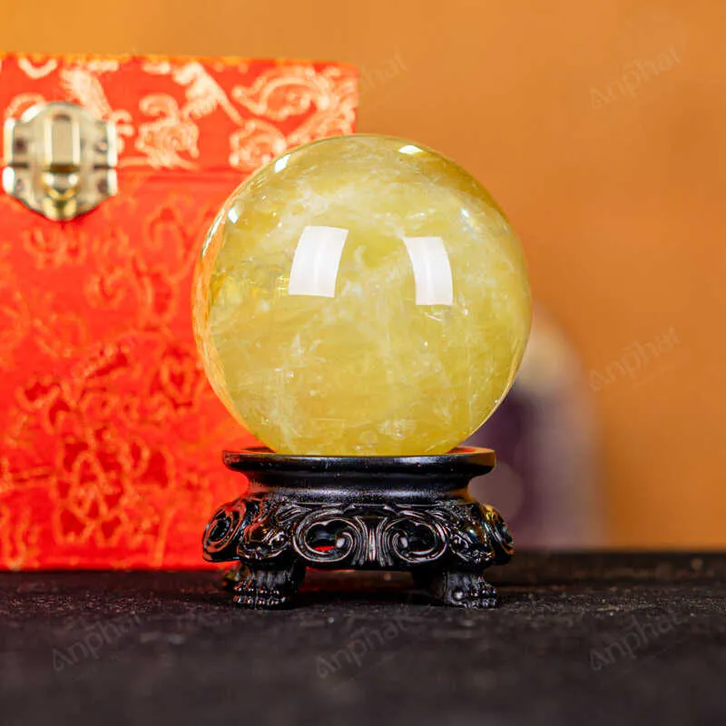 Ảnh cận cảnh quả cầu đá thạch anh vàng