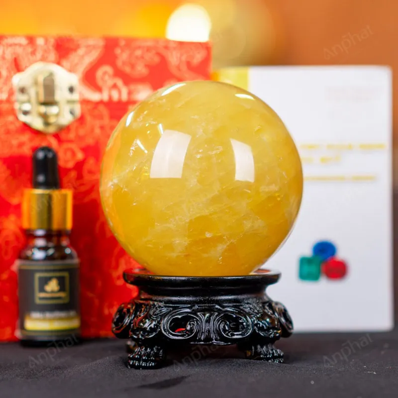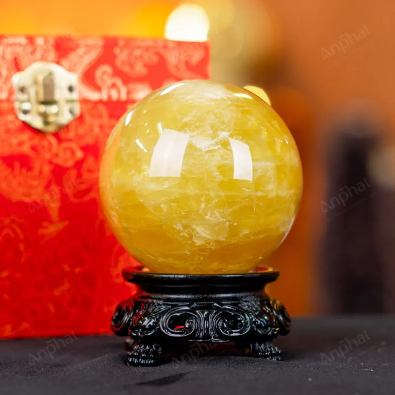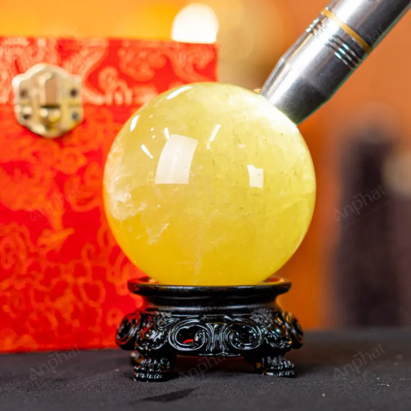 Ảnh cận cảnh quả cầu đá thạch anh vàng