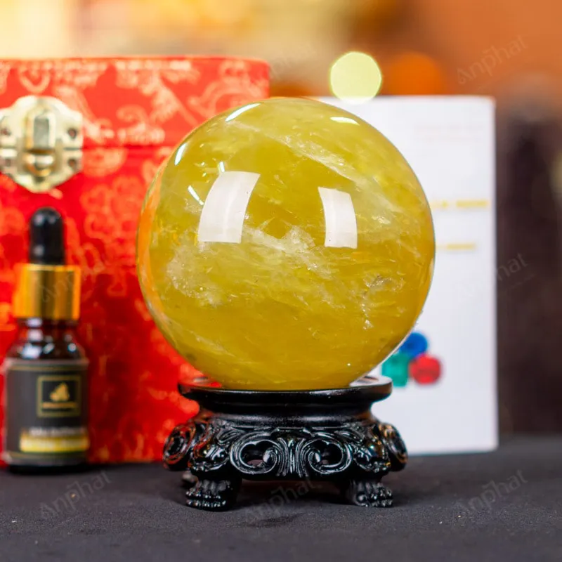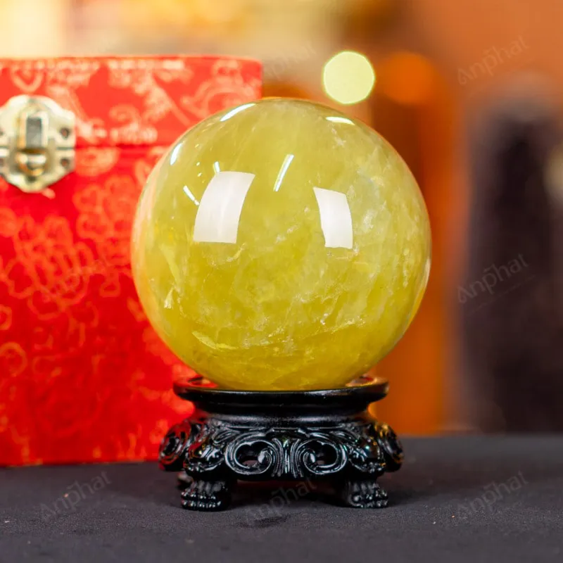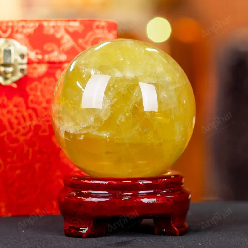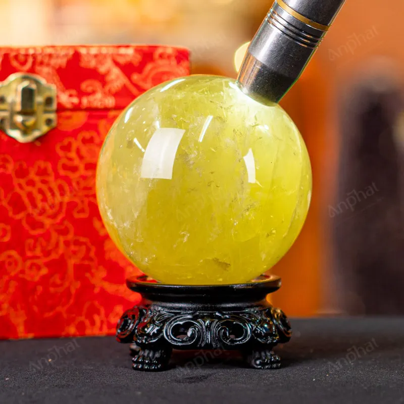 Ảnh cận cảnh quả cầu đá thạch anh vàng