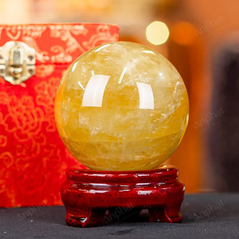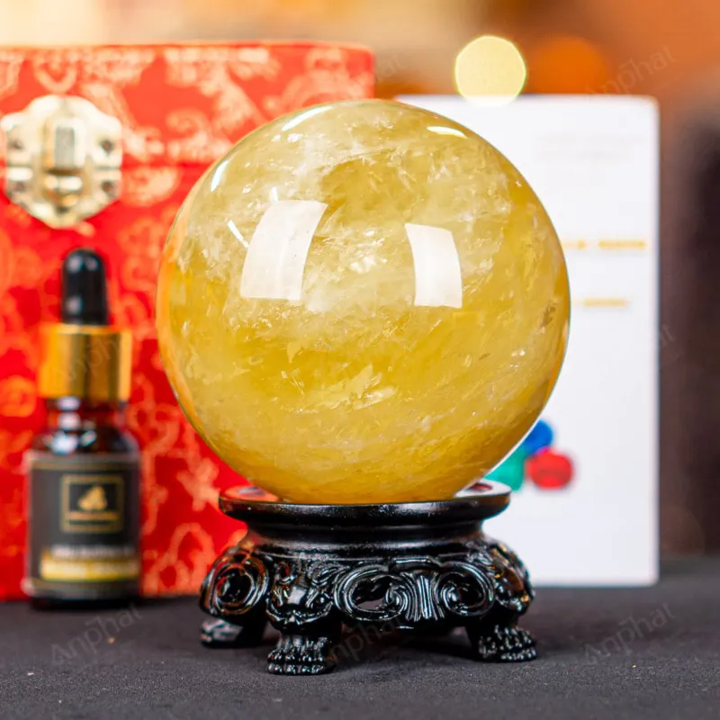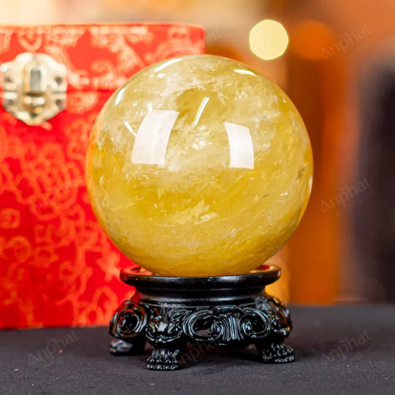Ảnh cận cảnh quả cầu đá thạch anh vàng