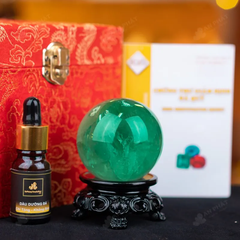 - Trọn bộ sản phẩm bao gồm: quả cầu + 01 đế gỗ + hộp đựng sang trọng + túi đựng sang trọng + dầu dưỡng đá + thiệp + giấy kiểm định chất lượng đá
