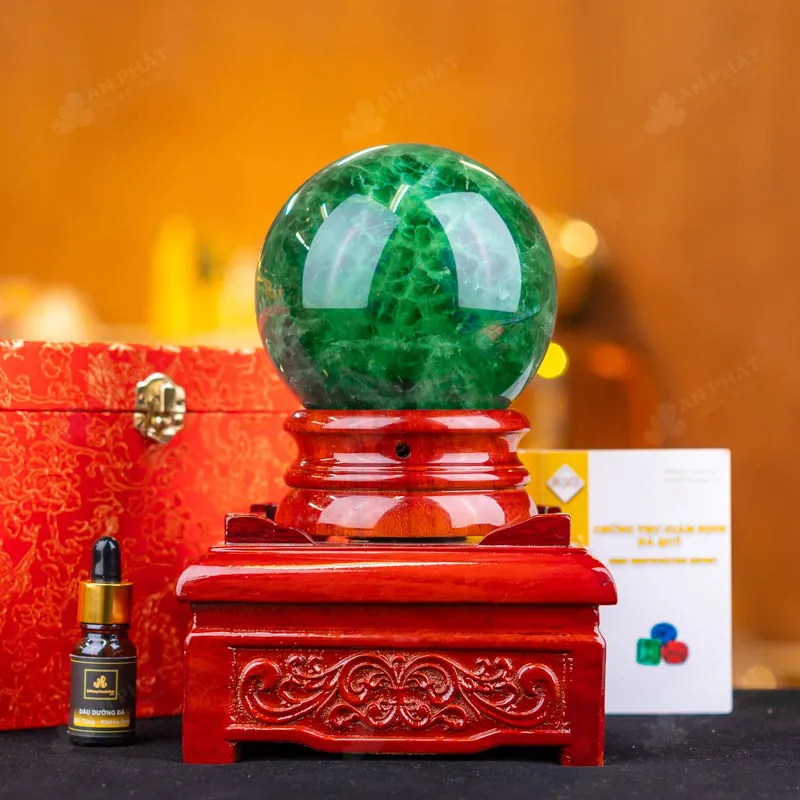 - Trọn bộ sản phẩm bao gồm: quả cầu + 01 đế gỗ + hộp đựng sang trọng + túi đựng sang trọng + dầu dưỡng đá + thiệp + giấy kiểm định chất lượng đá